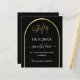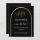 Une carte Save the Date pour une fête de 50e anniversaire. Un arrière - plan noir, décoré d'un faux arc doré. Personnalisez et ajoutez une date et votre nom. Le texte : Fifty et Save the Date est écrit avec un grand script de style à la main tendance. 1 feuille = 1 enregistrer la date d'impression du bord au bord.