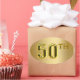 50ème en or classe 3d numéros de look graphique sur un or métallique arrière - plan à apparier. Montré est l'autocollant de forme ovale populaire. D'autres formes et tailles sont disponibles. Un look cher sans frais ! Faites de grands faveurs et enveloppez les sceaux pour un cinquantième mariage d'or, anniversaire ou réunion.