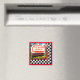 Square save-the-date magnet with an image of a 50s retro diner sign, red diner clock, and a vintage 50s female server on a black and white checkerboard. Customize with the date of your party. See the entire Nifty 50s Magnet collection in the PARTY FAVORS section.