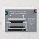 Personalize this pink, black and blue retro1950's sock hop style party invitation, just change the details of the party and you're done! Features pink and black chequered counter, milkshakes, records and musical notes.
