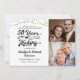 Invite guests to an anniversary party 50 YEARS IN THE MAKING with these fun black and gold invitations featuring a retro typography title design that incorporates their wedding year within the design, string lights and personalized with 2 photos (perhaps use Then and Now pictures for a memorable keepsake). PHOTO TIP: For fastest/best results, choose a photo with the subject in the middle and/or pre-crop it to a similar shape as shown BEFORE uploading and use the CHANGE tab in the PERSONALIZE section. CHANGES: Change the personalized text font style, colour, size and placement by clicking on CUSTOMIZE FURTHER under the PERSONALIZE section. Contact the designer via Zazzle Chat or makeitaboutyoustore@gmail.com if you'd like this design modified, on another product or would like coordinating items.