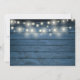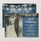 Featuring string lights and delicate golden love hearts confetti on a blue rustic wood background. Personalize with your favourite wedding photo and your special 50th golden wedding anniversary celebration details in chic typography. Designed by Thisisnotme©