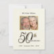 Elegant 50th Wedding Anniversary party photo invitations -- Contemporary style typography ivory sand parchment background. Customize with your photo, names, date, and details for a unique golden anniversary celebration. Matching postage and thank you cards available.