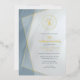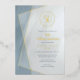 This modern geometric style 50th wedding anniversary party invitation is simply designed with a dusty blue colour theme, an asymmetric geometric frame accent and select custom text in real gold foil, and a blue / grey marble texture appearance - customize the text elements for any anniversary or birthday celebration - by katz_d_zynes