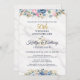 Elegant 50th wedding anniversary celebration invitation in gold and navy blue with watercolor floral accents in navy blue, gold, white and pink, calligraphy script typography and wedding rings against a muted marble background. All text is editable and can be used for any year anniversary. Contact the designer via Zazzle Chat or makeitaboutyoustore@gmail.com if you'd like this design modified, on another product or would like coordinating items.