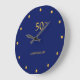 50TH Anniversary & Golden Dots on Navy Blue Large Clock