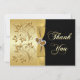This elegant black and gold floral thank you card has a PRINTED gold metallic look ribbon and bow with a pair of PRINTED glitter and diamond jewelled joined hearts on it that matches the 50th wedding anniversary invitation shown below. All the text is customizable, and so are the paper choices. ALSO, if you change fonts or font sizes, your text may not fit properly anymore. Zazzle will not edit anything for typos, mis-alignment, or anything else, and I will not see your invitation. Everything will print as it appears on your monitor. If you need help with the invitation, please contact me BEFORE you order it. This invitation is designed to fit the 5x7 size card. If you change to another size, the design will no longer fit properly, so if you want a different size, please contact me so I can re-design it for you. If you require any other matching items in this design, please email your request to niteowlstudio@gmail.com.
