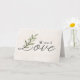 LOVE text in an elegant script font with green leaves on soft neutral texture background for 50th anniversary congratulations