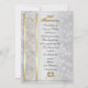 50th Anniversary party invitation with gold text and ornamental design on silvery white satin-like background with the look of embossed ivy leaves for an elegant formal invitation