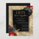 50th wedding anniversary Red and Blacks Floral Invitations. Faux gold Floral Leaves. Script font highlights with easy to read serif name font. Easy to adjust for your own wedding needs.