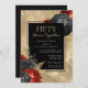 50th wedding anniversary Red and Blacks Floral Invitations. Faux gold Floral Leaves. Script font highlights with easy to read serif name font. Easy to adjust for your own wedding needs.