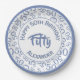 50th Birthday Age Number Pattern Blue/White 50 Paper Plate