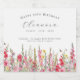 Perfect table decor for an August birthday party. Pink gladiolus is the birth flower for that month. It forms a pretty watercolor bottom border on this floral personalized wine bottle label. The birthday guest of honour's name, age and birthdate are placed above it using elegant calligraphy and typography. All text is editable.