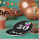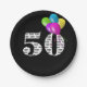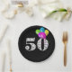Colourful balloon bouquet with ribbons on 50 number with black background.