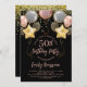 This milestone occasion calls for a party invite with gold glitter and balloons which is both striking and attention grabbing. A dynamic bold 50th birthday party invitation featuring balloons and gold glitter confetti on black. Sparkly, dazzling, and celebratory, featuring a brush style script in contrast with a clean sans serif typeface with shimmering and festive party elements.