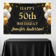 Celebrate in style with our 50th Birthday Black and Gold Celebration Banner! This elegant banner is designed with a striking black background accented by shimmering gold details, creating a luxurious and festive ambiance. Perfect for a milestone celebration, it features customizable text to honour the guest of honour, adding a personal touch to the décor. Ideal for both indoor and outdoor settings, this durable banner makes a statement while setting the tone for an unforgettable celebration.