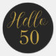 Elegant black and gold 50th birthday sticker design. This modern typography design is in chic black and gold. It has the text "Hello 50" in trending typography. This stylish design is perfect for an unforgettable 50th birthday party celebration. If you need help with personalization, or for a custom design contact me via zazzle chat or email: ursuladawnmoon@gmail.com