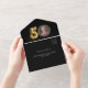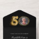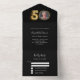 A black background, decorated with a large number 50 in faux gold. Personalize and add a photo, name, party details, RSVP date, return address and name.