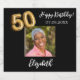 A classic black background decorated. Personalize and add a date, name and a photo. Age number written with a balloon style font.