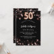 50th birthday black rose gold stars invitation