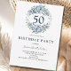 Get ready to celebrate with this elegant blue floral 50th birthday invitation. Trendy summer watercolor floral. Easy to change the text.