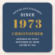 50th Birthday Born 1973 Add Name Blue Gold Square Paper Coaster