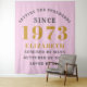 Celebrate the special occasion of a 50th birthday with this luxurious pink and grey wall banner, perfect for personalizing with name and year of your birth, 1973. This large tapestry is adorned with a beautiful, unique design and a stylish font for a memorable, one-of-a-kind birthday celebration. Showcase this special keepsake at the party and enjoy the memories for years to come.