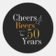 50th Birthday Cheers Beers Black Gold Party Classic Round Sticker