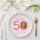 50th birthday confetti coral and pink photo paper plate
