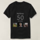 For a 50th birthday as a gift or for the party. A collage of 3 of your photos of himself friends, family, interest or pets. Personalize and add his name, age 50 and a date. Date of birth or the date of the birthday party. Grey and white coloured text.