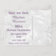 Womens' elegant 50th Birthday Party save the date postcards. Woman's fiftieth birthday party save the date cards. Beautiful white damask pattern background of flourishes and swirls with a pretty, stylish romantic purple / lilac / lavender bow and ribbon image. These glamourous, chic, classy save the date postcards are beautifully sophisticated and are decorated / printed on both sides. PLEASE NOTE: All products on Zazzle have flat printed images. Bow and ribbon images purchased from digital-designs-by-elena. If you need any assistance customizing your product please contact me through my store and I will be happy to help. I also have other matching products in my store.
