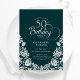 Emerald green silver elegant 50th birthday party invitation. Classy design featuring roses, faux silver foil and typography script font. Trendy invite card perfect for a stylish female bday celebration. Personalize with your own details. Can be customized to any age. Printed Zazzle invitations or instant download digital printable template.