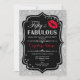50th Birthday - Fifty Fabulous Black Red Silver Invitation