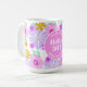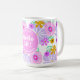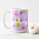 50th birthday pink modern cute floral party mug for 50th birthday celebration party or birthday gift. Colorful romantic floral pink party mug for women's birthday party . 50th birthday personalized tea coffee mug for fifty women, fifty mothers, fifty friends, wifes, grandmother. Cute pretty pink purple yellow elegant chic mug with script, calligraphy, typography , flowers, for a milestone celebration. Add name, text.