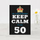 50th birthday greeting card for women. Easily personalized message under the crown to make this "Keep Calm" birthday card special plus your own message printed inside.