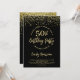 This milestone occasion calls for a party invite with gold glitter and confetti. A dynamic bold 50th birthday party invitation with gold glitter confetti on black. Sparkly, and celebratory, featuring a brush style script in contrast with a clean sans serif typeface.