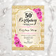 50th Birthday - Gold Stripes Pink Roses Invitation