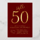 Celebrate a special milestone with a timeless, elegant invitation that will dazzle your guests! This 50th birthday invitation features a beautiful burgundy background with gold foil accents. It is designed with your special occasion in mind and can be customized with your own wording. Invite your friends and family to join you in celebrating this momentous occasion with the perfect invitation!