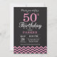 50th Birthday Invitation with Black and Pink Chevron. Chalkboard. Adult Birthday. Man or Women Bday Invite. For further customization, please click the "Customize it" button and use our design tool to modify this template.