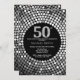 50th Birthday Invitation Black and Silver Glitter