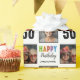 Wrapping paper that says "Happy Birthday" in typography using sans serif letters for HAPPY and a script for Birthday will make your gift looks special. Customize the name, age and photos for a wrapping paper you can personalize for anyone.