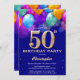 50th Birthday Navy Blue and Gold Colourful Balloon Invitation