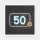 Glowing neon sign with a star on a dark brick city wall for 50th birthday party.