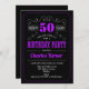 Elegant black, purple, white retro design with chalkboard pattern and script font. Cheers to 50 years! Message me if you need further customization.