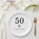Celebrating fabulous 50th birthday garden party plate design in pink with black text. To view more products click the store link.