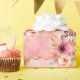 A trendy wrapping paper for a 50th birthday gift. With a faux gold hexagon geometrical shaped frame. Decorated with watercolored dahlia flowers in pink, cream and coral. Living coral with polka dots as background. Templates for a name and the age 50. Coral and burgundy coloured letters.