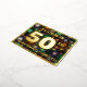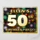 The front of this fun fiftieth birthday party/celebration foil invitation postcard design features a personalized name, a large number “50th”, the message “BIRTHDAY PARTY!”, and a border. The background of the front has a joyful, colourful pattern that resembles bursting celebratory fireworks. The back features personalized details about the event, such as the date, time, location, and any other information that may be important. Customizable invitations like these might be a fun way to invite guests to a birthday gathering being held in celebration of somebody’s 50th birthday. [~Z0000609]