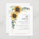 Eucalyptus Sunflower Floral Script 50th Birthday Invitation you can easily customize with your party details by clicking the "Personalize" button. Featuring bright yellow floral and greenery succulent with a gold foil geometric frame and modern typography