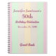 This 50th Birthday Party Guest Book spiral notebook is decorated with a pastel stripe pattern. Easy to customize, just CHANGE or delete EXAMPLE Name Age and Date. All Rights Reserved © 2014 Alan & Marcia Socolik.