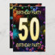 Add a name to customize this unique party invitation. 50th birthday party invitation with fireworks and bubbles. Add your details inside to create a perfect fun invite. Light up the sky with these glorious fireworks. An invitation to a birthday party that has style and loads of fun.